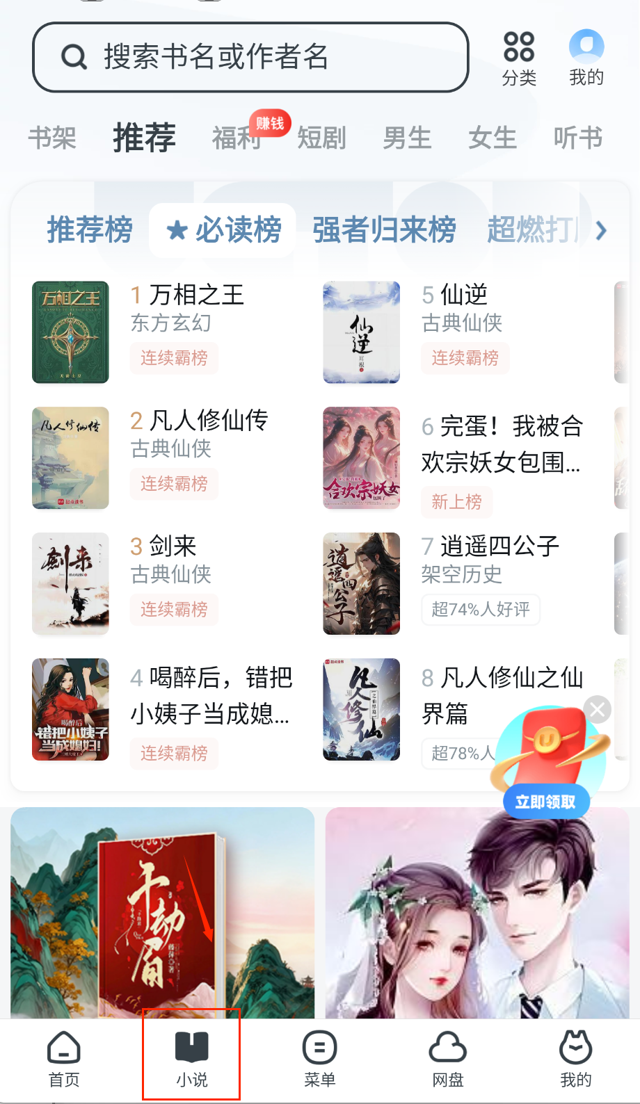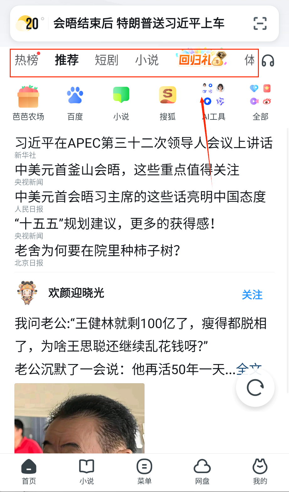 2、浏览内容时可以看到顶部有热榜、推荐、短剧等分类标签,点击不同标签能切换内容频道,下方会实时更新相关资讯和小说推荐。