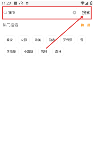 2、进入搜索界面后,在搜索框输入关键词(比如【猫咪】),再点击【搜索】按钮,就能获取相关图片啦。