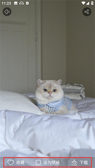 4、点击目标图片进入详情页后,可使用【收藏】【设为壁纸】【下载】等功能,便捷处理这张图片哦。