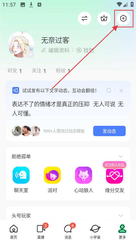1、打开APP,点击右上角设置图标,进入设置页面,准备调整隐私设置啦。