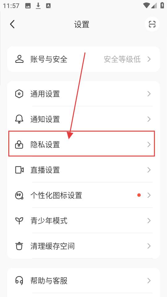 2、在设置页面,找到【隐私设置】选项并点击,进入隐私设置页面哦。