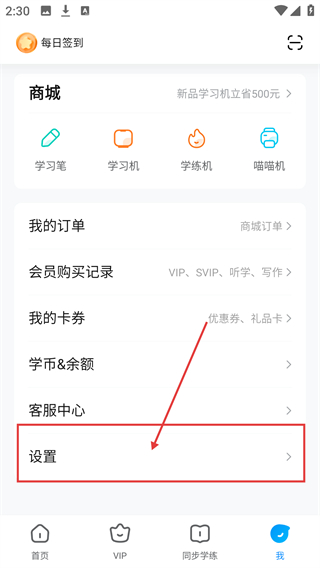 1、进入“我”的页面后,找到【设置】选项并点击,就能进入功能配置的操作界面啦。