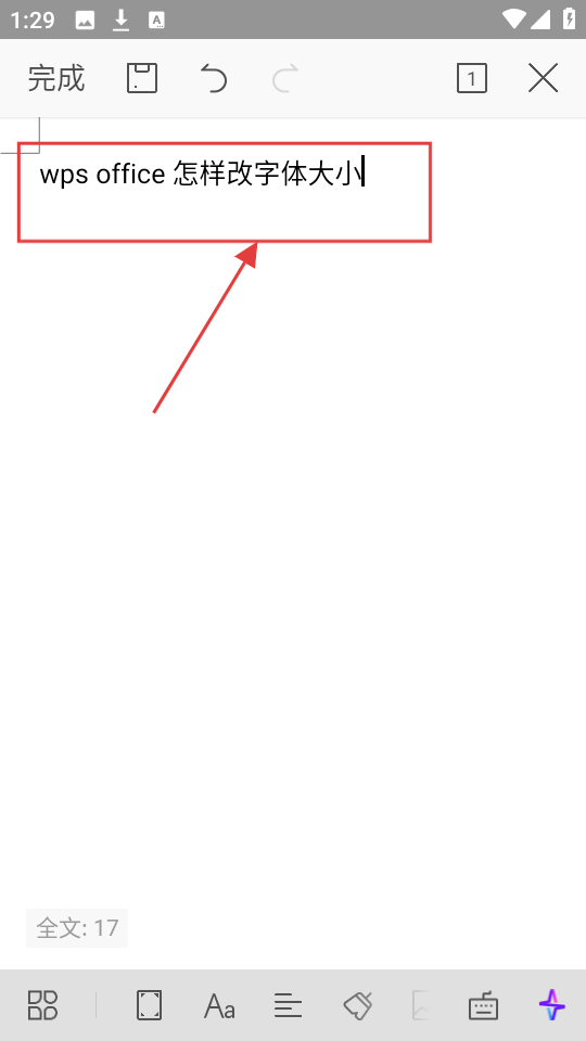 3、选中输入的文本后,点击底部的【Aa】图标,打开字体设置选项,就能为调整字体大小做准备啦。