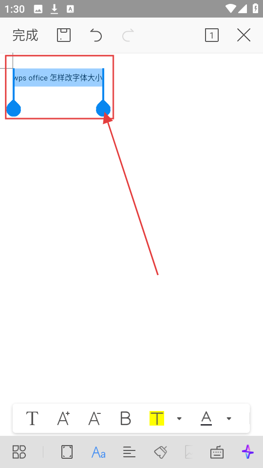 4、打开字体设置选项后,在弹出的工具栏里,可找到调整字体大小的功能,按需设置,让文字更美观。