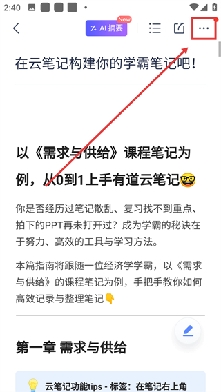 3、在笔记详情页,点右上角的更多按钮,可展开操作菜单,获取更多笔记管理功能呢。