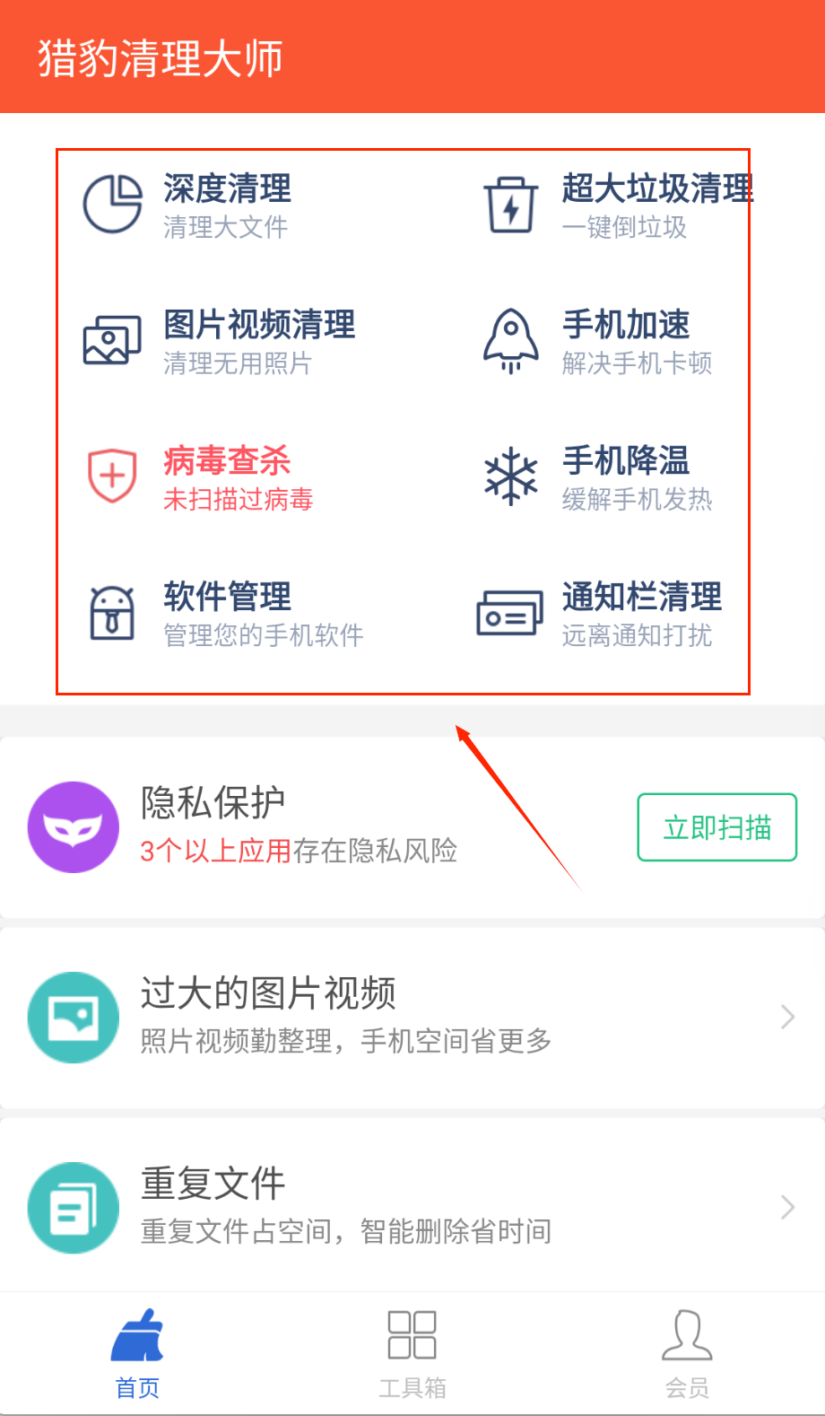 1、猎豹清理大师带给你更好的清理功能使用,提供给你更加全面的清理操作满足用户的需求。