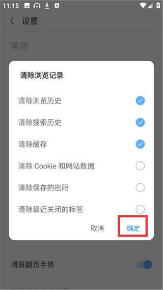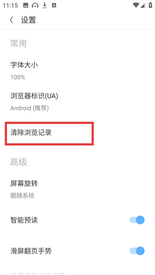 3、进入设置页后点击【清除浏览记录】选项,就能唤起清除记录的选择弹窗,准备清理数据啦。