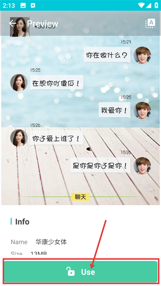 4、解锁字体后,按钮会变为【Use】,点击它就能将该字体应用到对应的场景中,使用新字体啦。