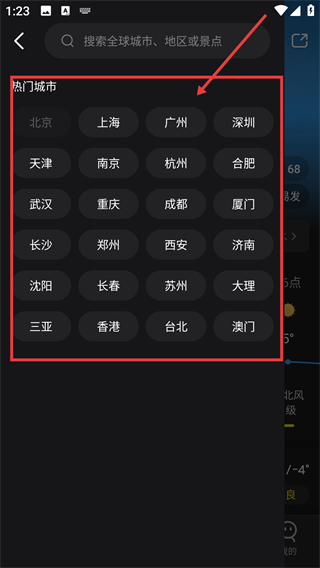 3、在城市选择界面的热门城市板块,点击心仪的城市(如【大理】),就能将其添加到城市列表啦。