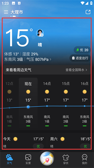 -优化实景首页展示效果,微博天气热点话题随时查看。