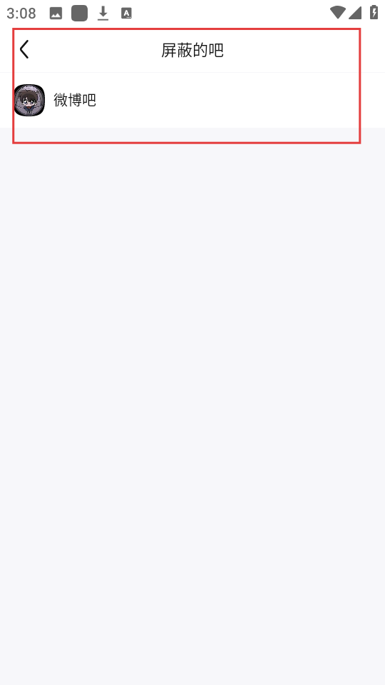 4、进入【屏蔽的吧】页面,能清楚看到已屏蔽的吧,比如【微博吧】,管理起来很方便。
