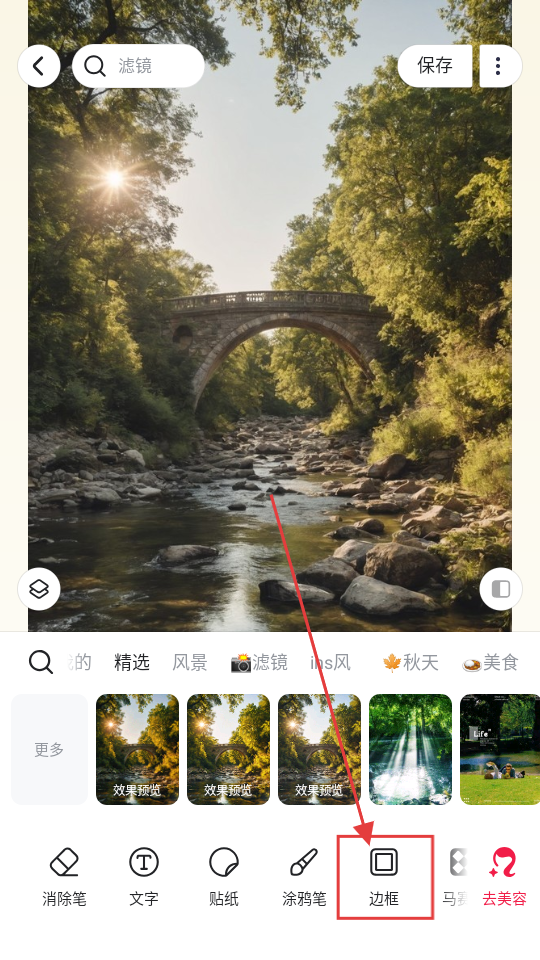 4、应用边框后,点击右上角【保存】按钮,即可保存编辑好的图片啦。