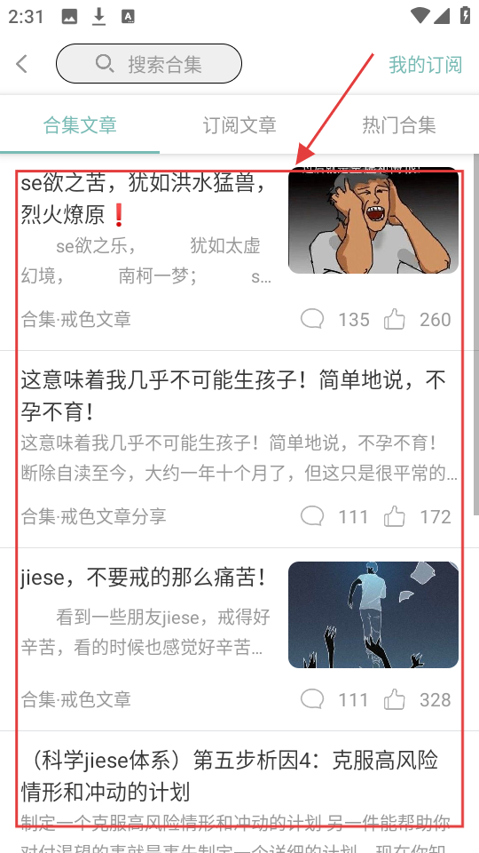 2、进入【文章合集】页面,能看到各类合集文章,可浏览感兴趣的文章,了解相关内容。