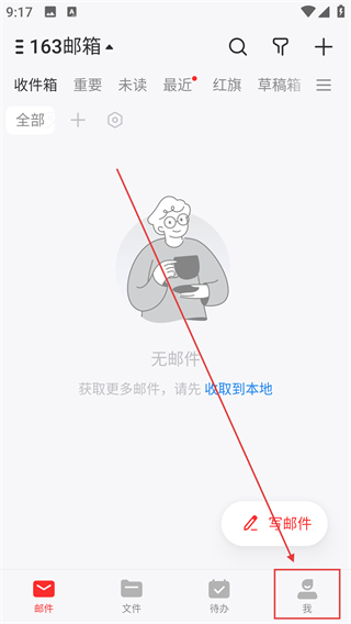 1、在163邮箱的邮件页面,点击底部的【我】选项,可进入个人中心界面,管理账号相关设置与功能啦。