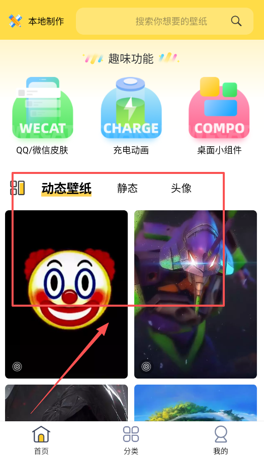1、首先打开软件,在首页底部导航栏找到本地制作功能,点击进入后可以搜索想要的壁纸素材。