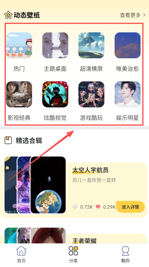 4、最后别忘了探索分类页面的动态壁纸专区,那里有影视经典、游戏酷玩等丰富分类,这样更换起来特别方便。