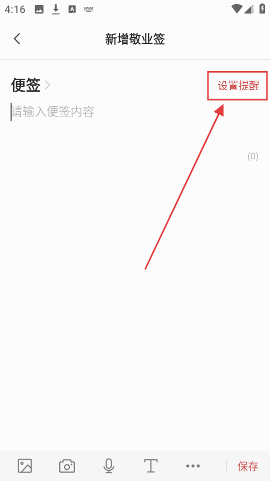 1、我们在新增敬业签界面,点击【设置提醒】,就能进入时间提醒设置页面,准备设置提醒时间啦。