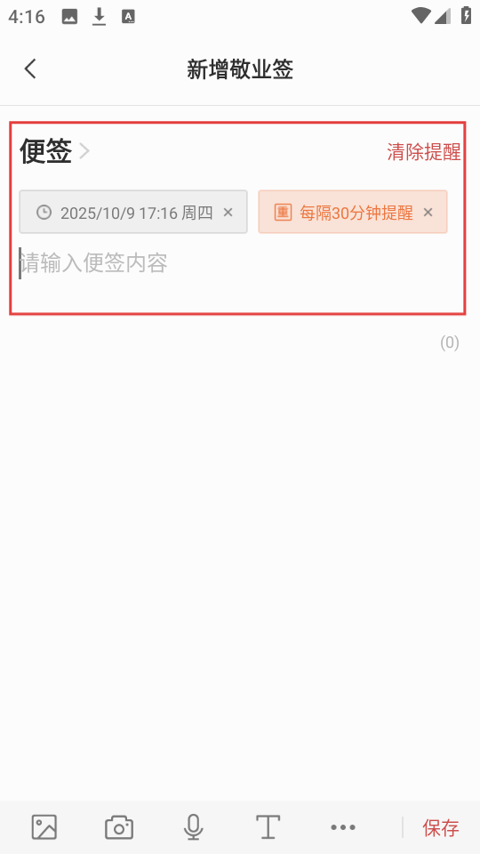 4、设置好提醒时间和重复频率后,新增敬业签界面会显示提醒信息,这样就完成提醒设置啦。