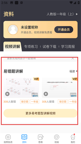 3、切换到视频讲解标签页,能看到易错题讲解视频,点击就能观看对应题型的解析啦。