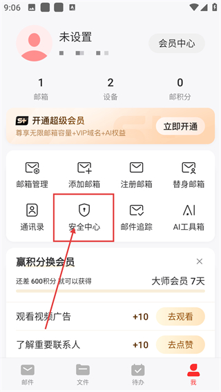 2、进入个人中心后,点【安全中心】选项能进入安全管理页,后续可调整账号安全设置哦。
