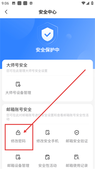 3、在安全中心页,点【修改密码】选项能进入密码管理流程,后续需完成验证来更新密码啦。
