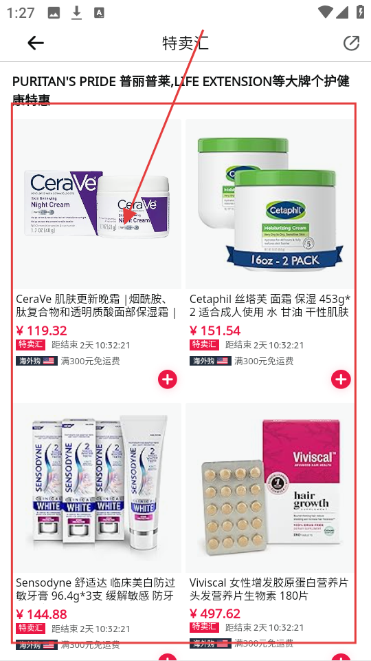3、在【特卖汇】页面,有不少个护健康好物,看到心仪的【CeraVe-肌肤更新晚霜】,就点击它查看详情吧。