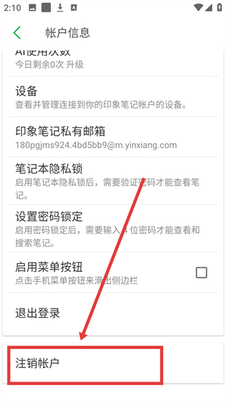 3、在帐户信息页,点【注销帐户】选项,可进入注销确认页面,准备完成账户注销操作呢。