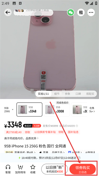 3、选中目标商品后,点击底部的【领券购买】按钮,就能进入商品的下单流程页面啦。