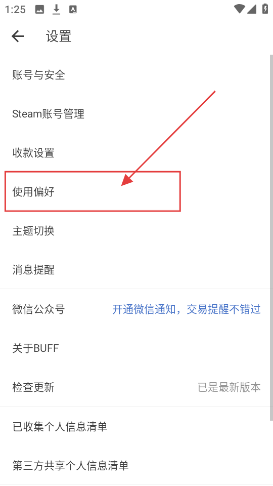 2、进入设置页,找到【使用偏好】选项,点击它,就能进入偏好设置页面。