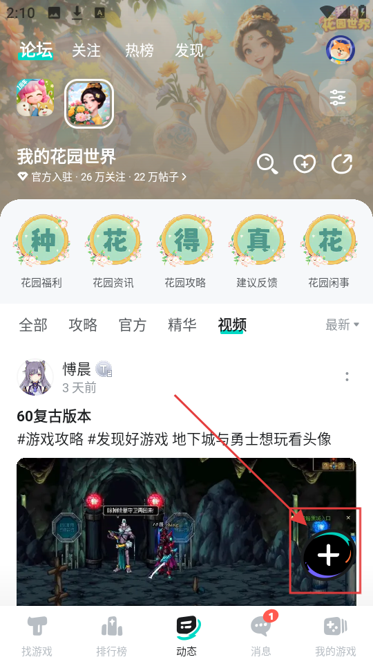 1、在动态页面,看到右下角带“+”的圆形图标,点击它就能进入内容发布选择页面,选择要发布的内容类型啦。