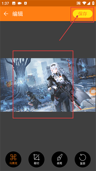 4、给图片添加好马赛克后,点右上角【保存】按钮,就能把编辑好的图片存下来啦。