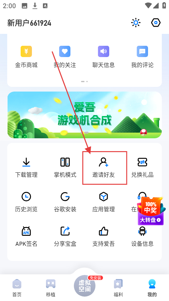 2、进入个人页面后,点【邀请好友】选项呀,就能进入邀请活动页面啦。