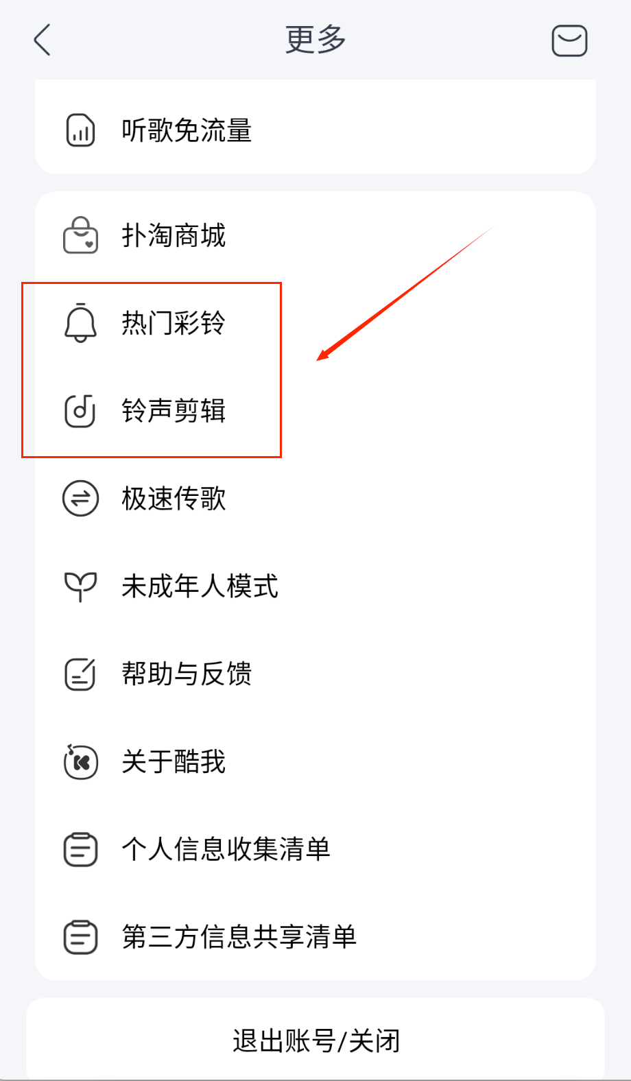 1、下载安装酷我音乐app并运行软件,在首页点击右上角菜单按钮选择铃声剪辑功能,用户可选择手机本地文件或已拥有的铃声进行剪辑操作。