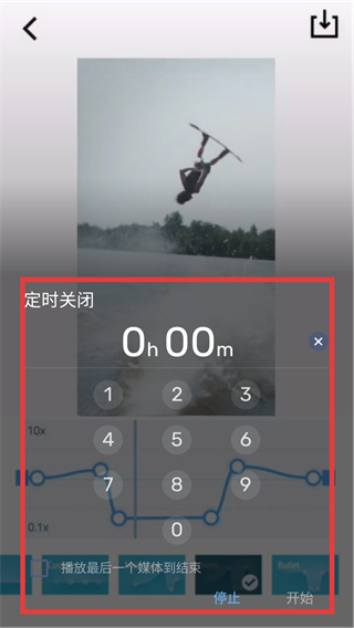 4、在定时关闭窗口中,通过数字按键设置时长后点【开始】,就能让视频播放到点自动关闭啦。