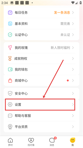 1、在【我】的界面找到【设置】并点击,进入设置页面,准备处理账号相关操作哦。