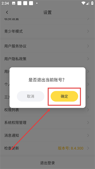 2、在设置页面滑动到底部,点击【退出登录】,触发退出账号的确认弹窗啦。