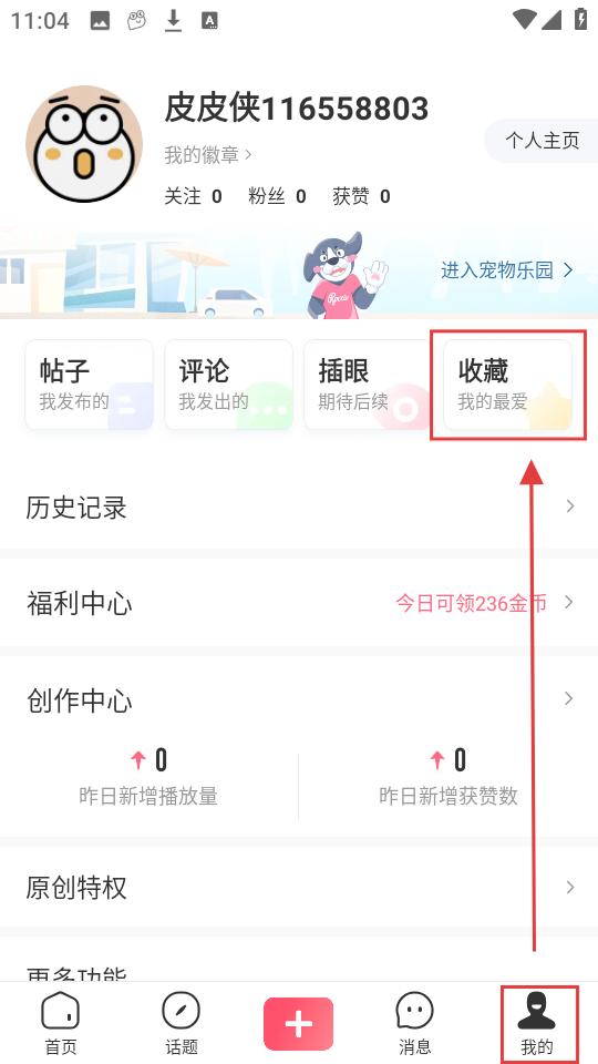3、点击底部【我的】,进入个人页面,找到【收藏】选项并点击,进入收藏页面呢。