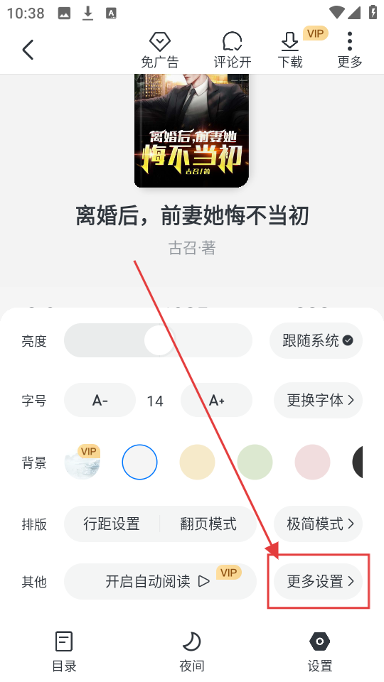 2、进入书籍详情页面后,若想调整阅读设置,点击【设置】按钮,就能展开设置选项啦。