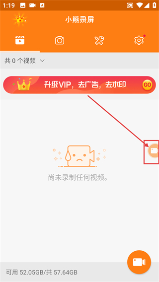 首先,在小熊录屏的主界面,点击右上角的设置图标。