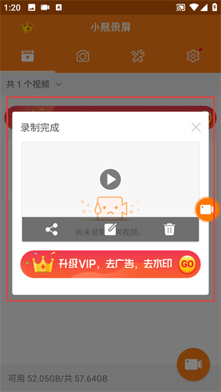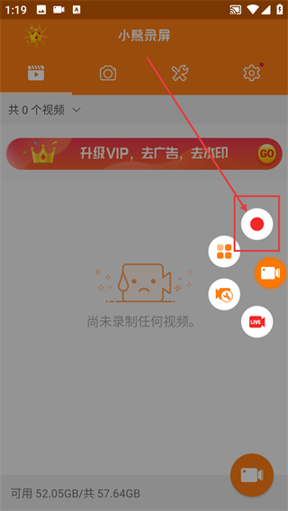 1、在小熊录屏首页点右下角录制按钮,能展开录制选项菜单,后续可选择开始录屏啦。