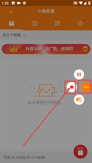 3、录屏过程中,点红色方块按钮可结束录制,同时能看到录制时长的计时显示啦。