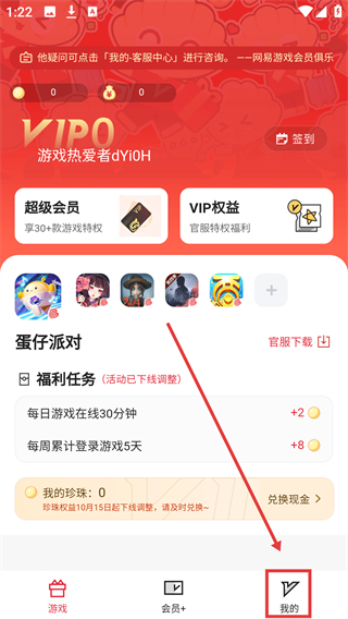 1、在游戏页面,点【我的】,可进入个人中心,查看账号信息和各类功能入口哦。