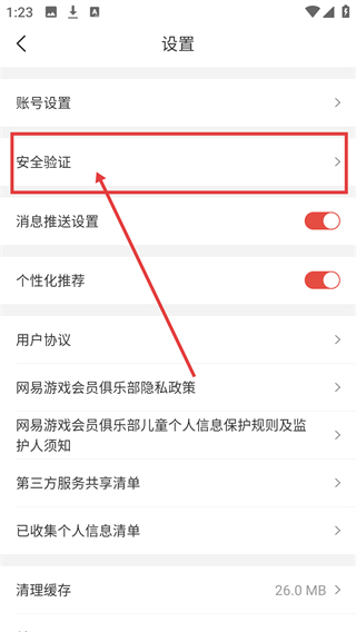 3、在设置页,点【安全验证】,可进入安全相关的操作界面,提升账号安全性呢。