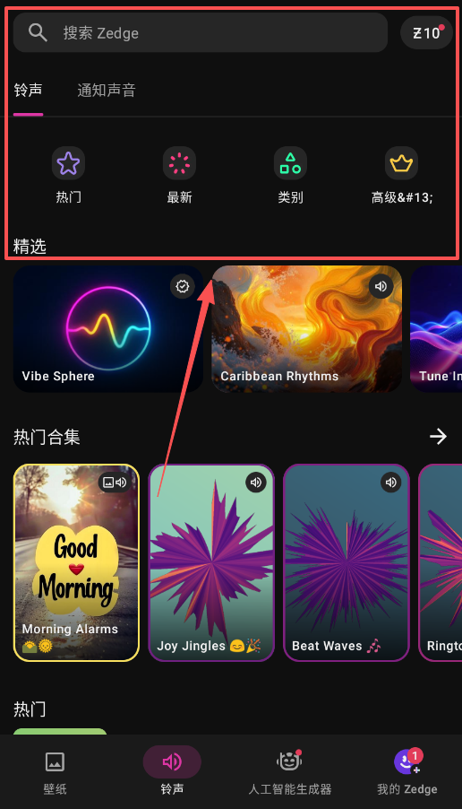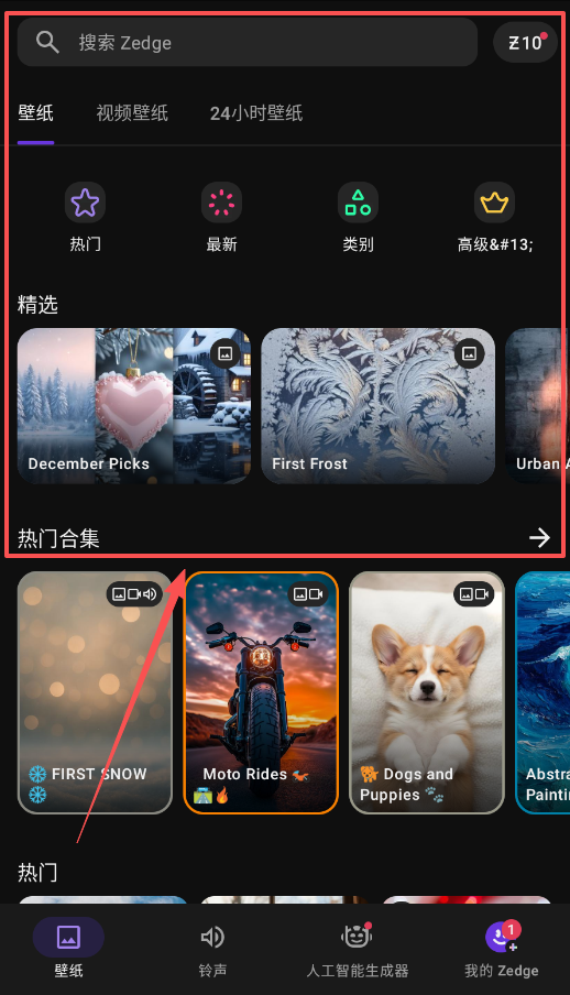 1、打开Zedge应用后,别只停留在默认推荐页面,多尝试顶部的“搜索”功能。