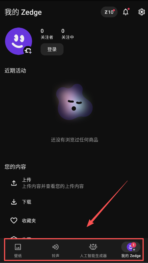 1、打开在本站下载的Zedge,进入主页,我们可以看到有壁纸、视频壁纸、铃声等功能
