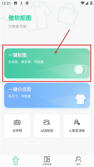 1、在傲软抠图首页点击【一键抠图】按钮,进入抠图编辑界面,可上传图片进行去背景操作哦。