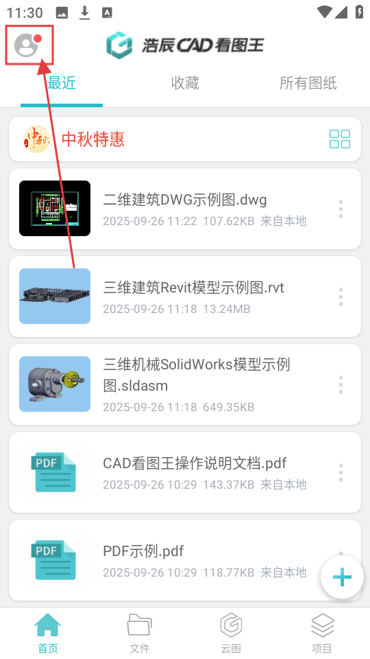 1、打开CAD看图王,点左上角头像,进入个人页面,能找到设置等功能入口,超方便的呢。