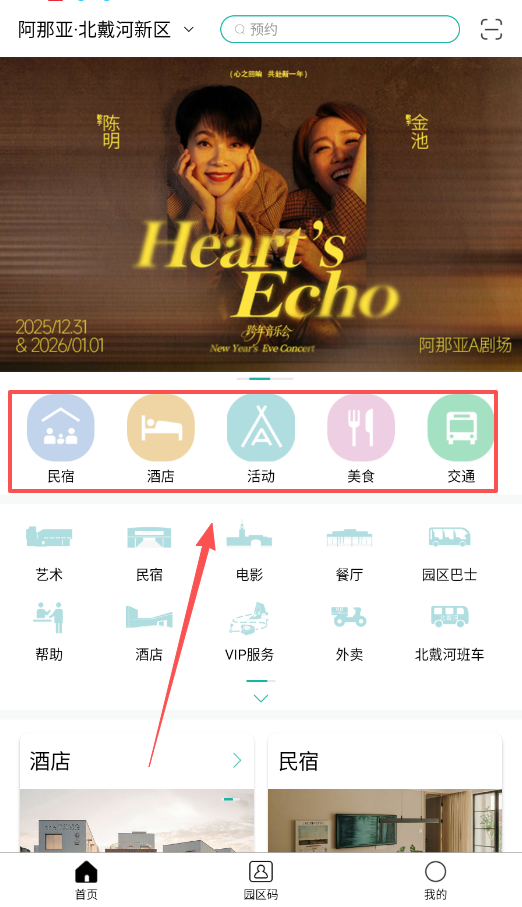3、预约和查看活动是关键步骤,点击首页的“预约”按钮,就可以预订热门场馆如孤独图书馆、阿那亚礼堂。