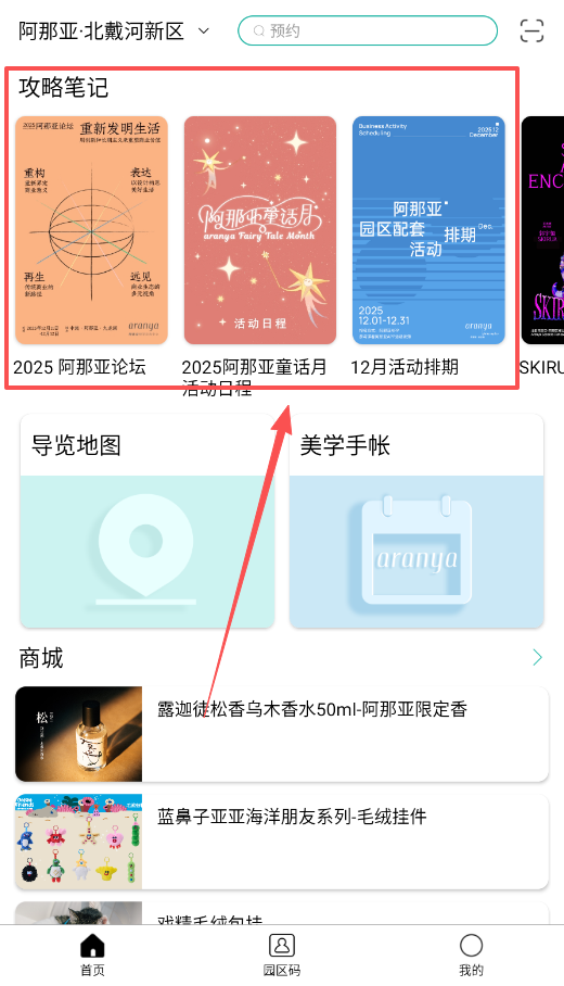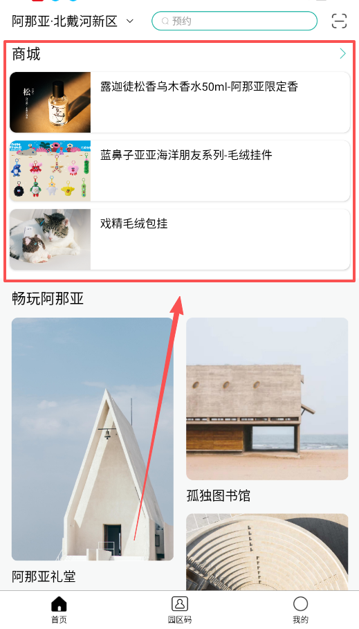 4、购物和获取服务也很方便,在“商城”板块,可以买到阿那亚限定商品,像香水、毛绒挂件等纪念品。