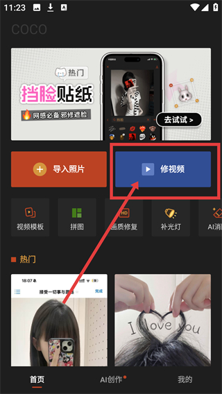 1、进入主界面后点击【修视频】按钮,就能进入视频编辑页面,开始对视频进行美化操作啦。